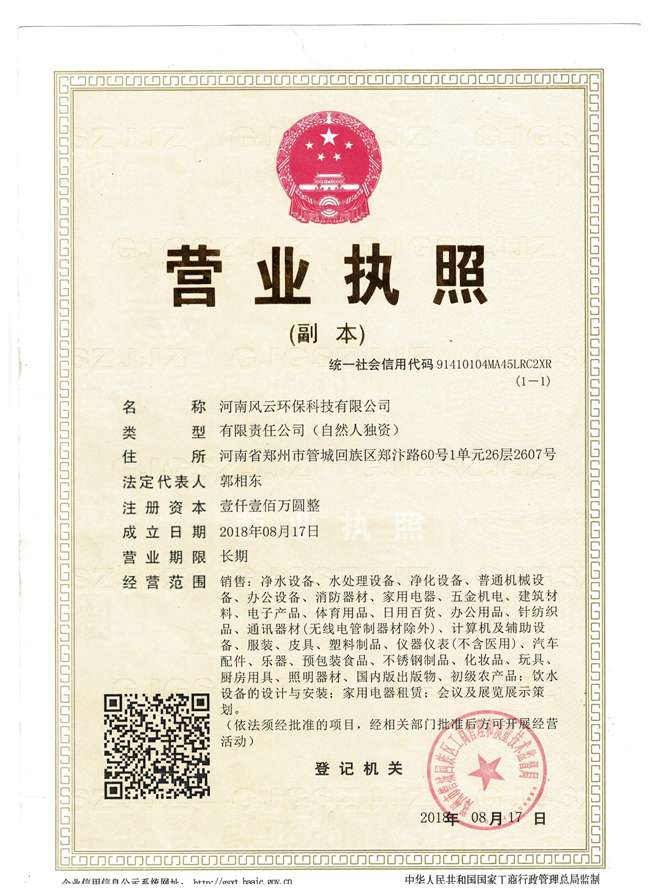 <p style=河南風云環保科技有限公司/河南浩美環保科技有限公司隸屬佛山市美的清湖凈水設備有限公司,河南風云環??萍加邢薰境闪⒂?016年12月,注冊資金1000萬元。公司主要從事美的集團名下的凈水器,專注凈水行業十多年,是集研發、生產、銷售、服務一體的企業。